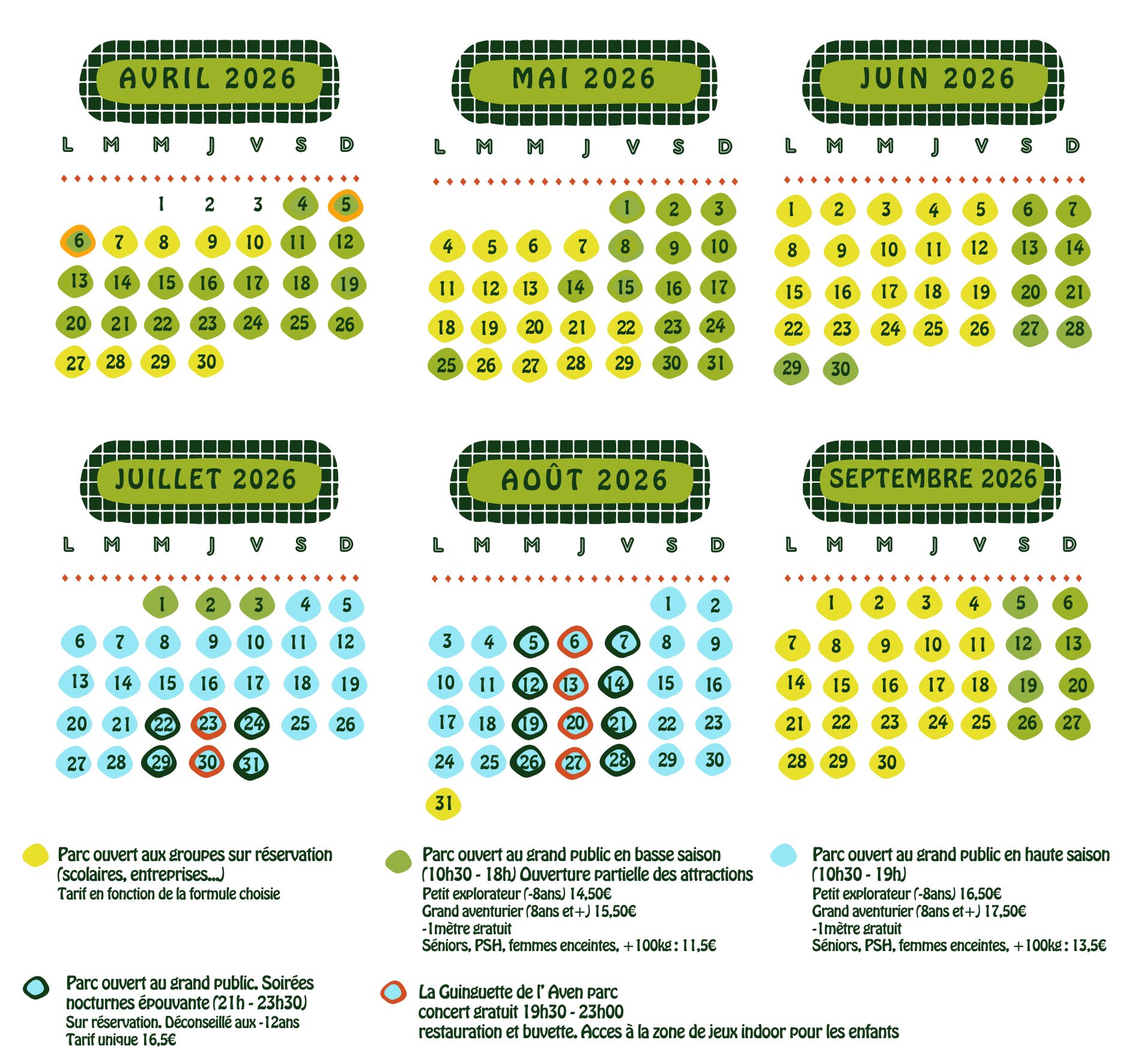 Fermeture de la restauration 30 min. avant la fermeture du parc.