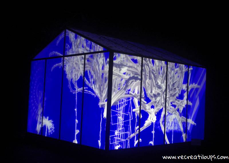 « Fractal Fowers in Vitro 2018 » – Dans le parc, une serre laisse apparaître à la tombée de la nuit des fleurs cristallines qui scintillent, se créent et se mouvent aléatoirement, interpellant et interrompant le visiteur dans sa balade vers le château.