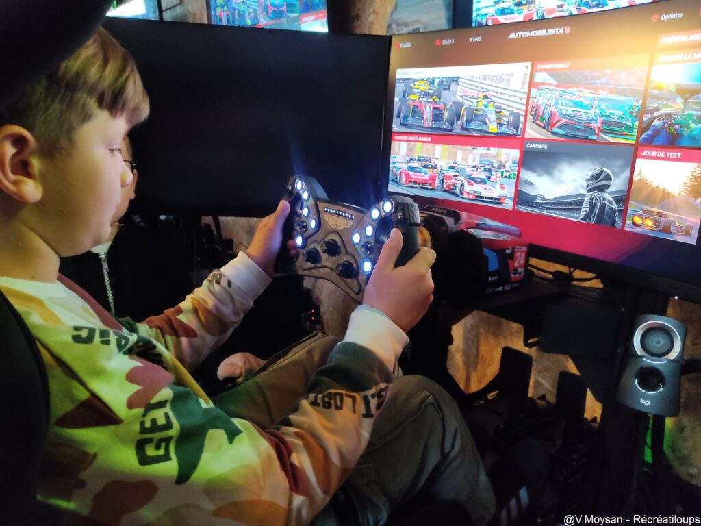Après une présentation du lieu et des équipements par Sébastien Nestour, créateur du lieu et passionné de sport automobile, les trois plus jeunes (8-11 ans) prennent place sur leur simulateur.