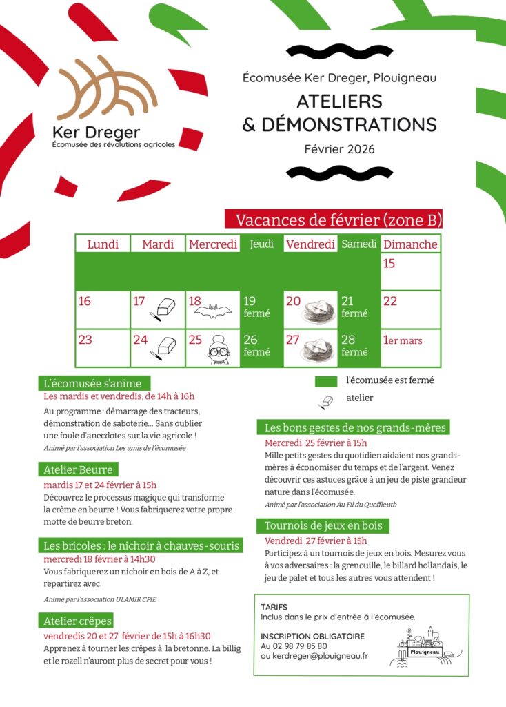 Ker Dreger est ouvert pendant les vacances d’hiver (zone B) et vous propose diverses animations et ateliers tout au long des vacances :