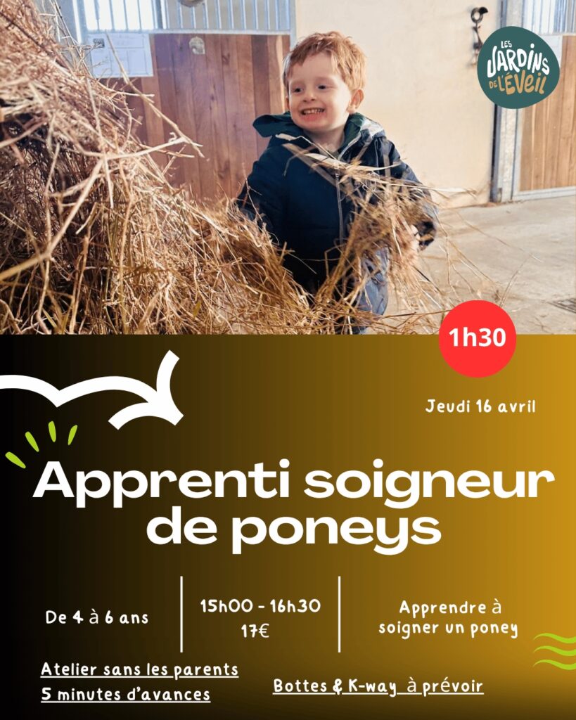 Les Jardins de l’Eveil proposent aux enfants de 4 à 6 ans un atelier apprenti soigneur pour découvrir le poney et s’occuper de lui.