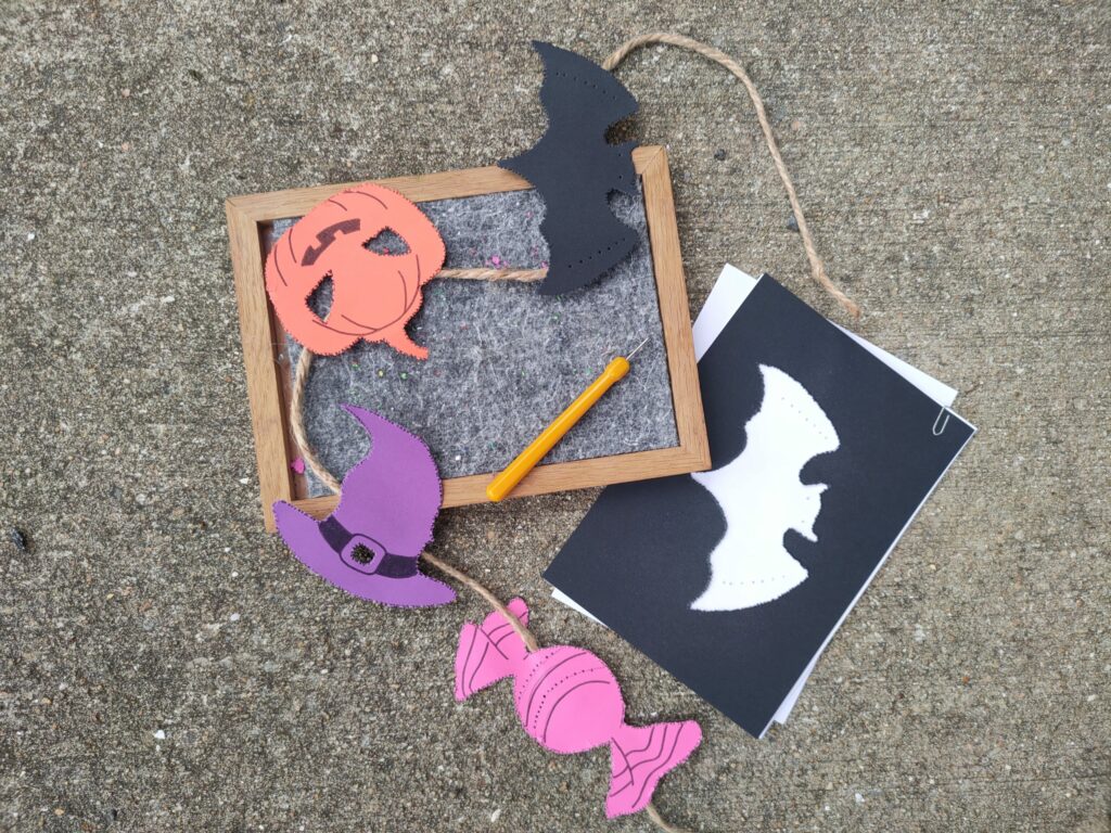 Pour Halloween, réalise des motifs de piquage effrayants : citrouilles, chauves-souris seront au rendez-vous !
