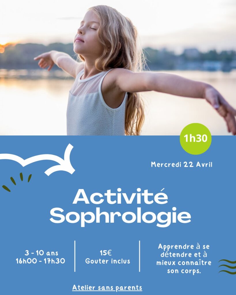 Par ailleurs, un atelier sophrologie pour adultes est prévu le samedi 25 avril de 18h à 19h30 / Tarif : 20€ (apéritif inclus)
