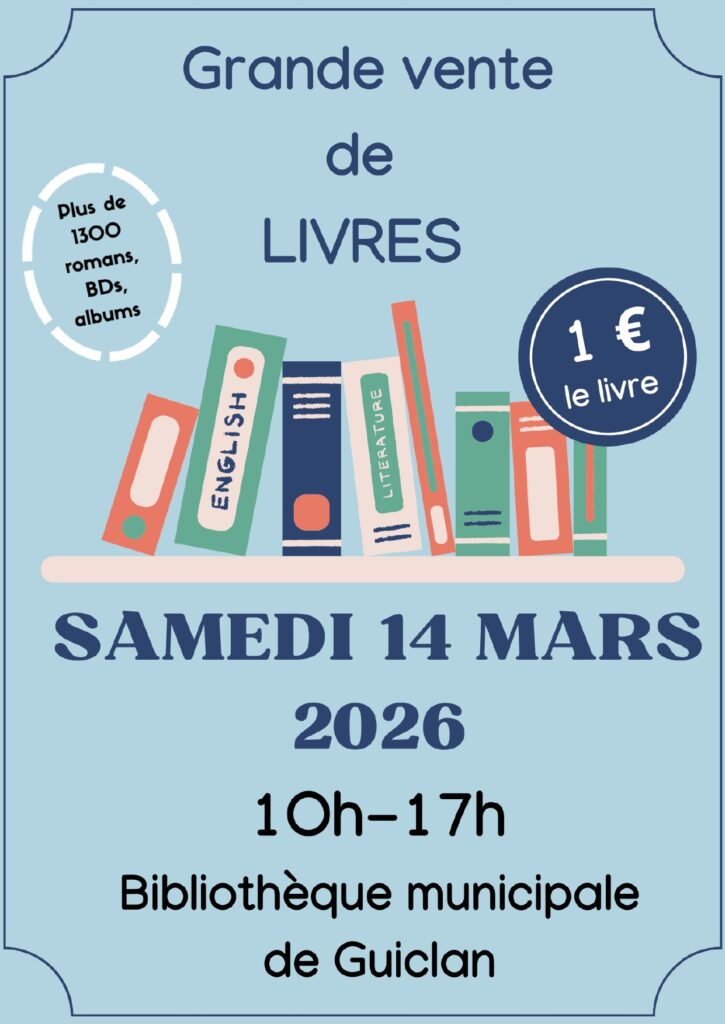 La bibliothèque municipale de Guiclan fait le ménage dans ses livres ! Dans le cadre du renouvellement de ses collections, plus de 1500 livres sont revendus au tarif d’1€ l’ouvrage. Il y en aura pour tous les goûts et tous les âges : romans, BD, albums, documentaires .. livres en grands caractères (livres adultes et enfants).
