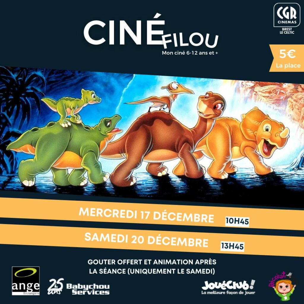 La séance Ciné Filou est une séance de cinéma jeune public à destination des enfants de 6 à 12 ans. Elle a lieu une fois par mois au cinéma CGR Le Celtic à Brest.