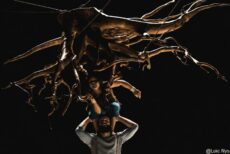 Une fractale évoque un objet mathématique surprenant, mais c’est surtout une source infinie d’émerveillement et de poésie pour les artistes de la compagnie Libertivore. Dernier volet d’un triptyque consacré à l’homme et la nature, Fractales nous invite dans un monde organique fascinant et mouvant. Un arbre suspendu dans les airs, des cordes-lianes tombées du ciel, un tapis de lentilles corail au sol, une jungle, un désert… offrent un cadre magnifique et des espaces de jeu pour les cinq interprètes. Avec maîtrise et légèreté, ils accompagnent de leurs acrobaties la lente métamorphose de cet environnement qu’ils affrontent parfois. Perfection visuelle, urgence écologique, du chaos à la renaissance, Fanny Soriano interroge le grand cycle de la vie.
