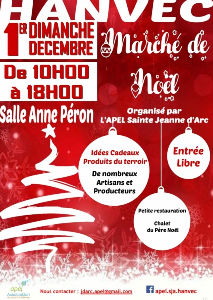 Un marché de Noël est organisé par les parents de l’école Ste Jeanne d’Arc sur la commune de Hanvec, dans la salle Anne Peron, de 10h à 18h le dimanche 1er décembre.