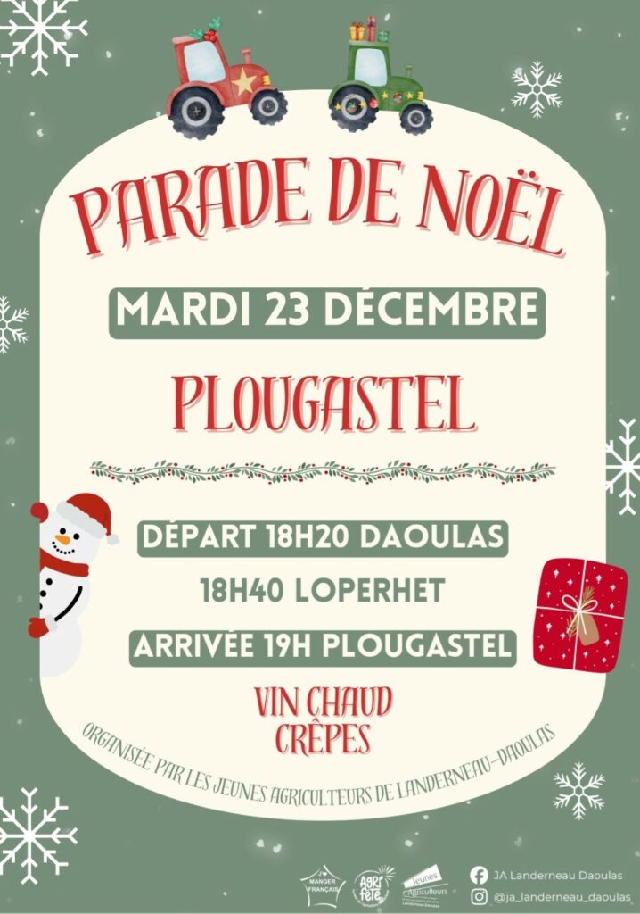 A l’initiative des Jeunes Agriculteurs du canton de Landerneau-Daoulas, assistez à une parade de tracteurs illuminés, le mardi 23 décembre 2025 :