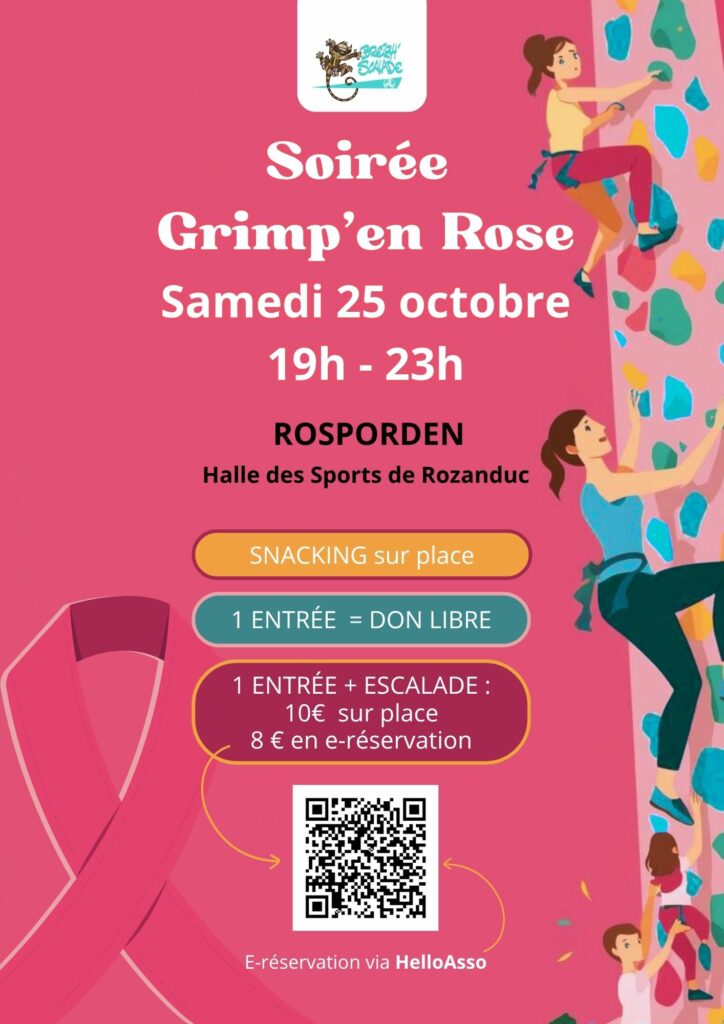 Le club d’escalade Breizh’Scalade organise une soirée Grimp’en Rose au profit de la recherche contre le cancer du sein, le 25 octobre prochain à Rosporden.