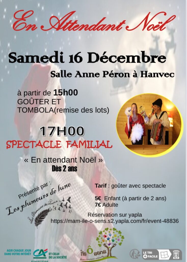 La Mam Île Ô Sens vous propose un spectacle de Noël le samedi 16 décembre à 17h à la salle Anne Péron, Hanvec.