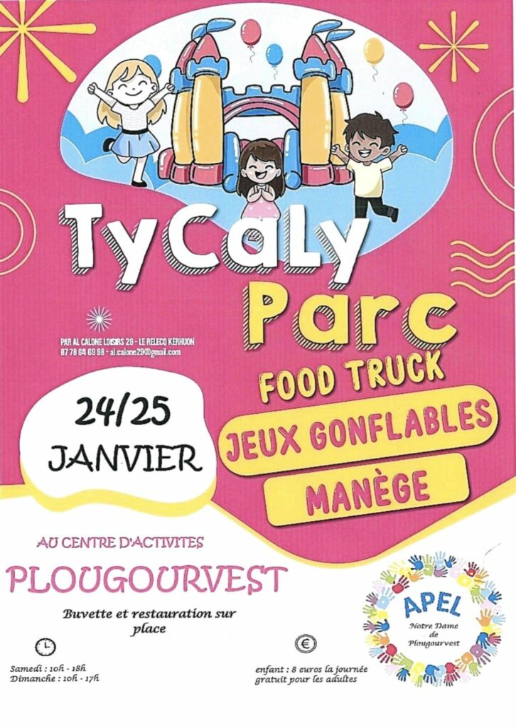 L’APEL de l’école Notre Dame de Plougourvest organise un week-end structures gonflables au centre d’activités les 24 et 25 janvier 2026.